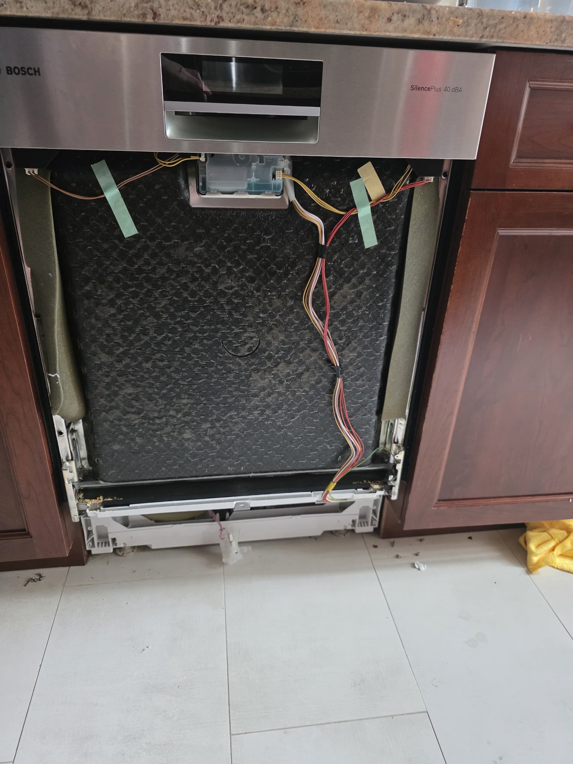 I disassembled the front door and kickstand to check if it is leaking. I found the water inlet valve in the back leaking a drop every 20 - 30 seconds. I am going order a new water inlet valve.