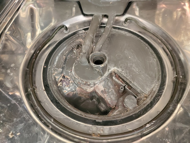 This dishwasher has a very coarse screen. There doesn’t appear to be any other easily accessible filter. I have some parts removed (spray arm and the coarse screen (called pump filter). Is there anything else to be done other than pulling dishwasher? As you can see we have some gunk buildup.