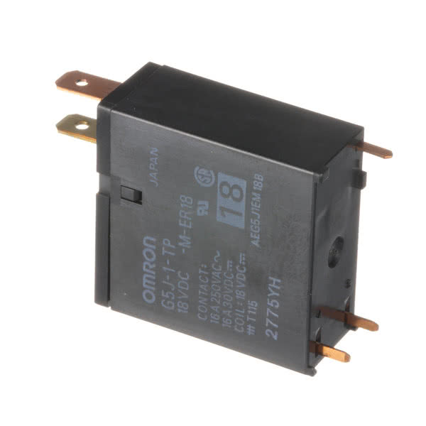 This is just a random picture of a relay from the internet. If you look at it, Omron is the manufacturer. G5J-1-TP-M-ER18 is the part number. It’s an 18 volt relay.