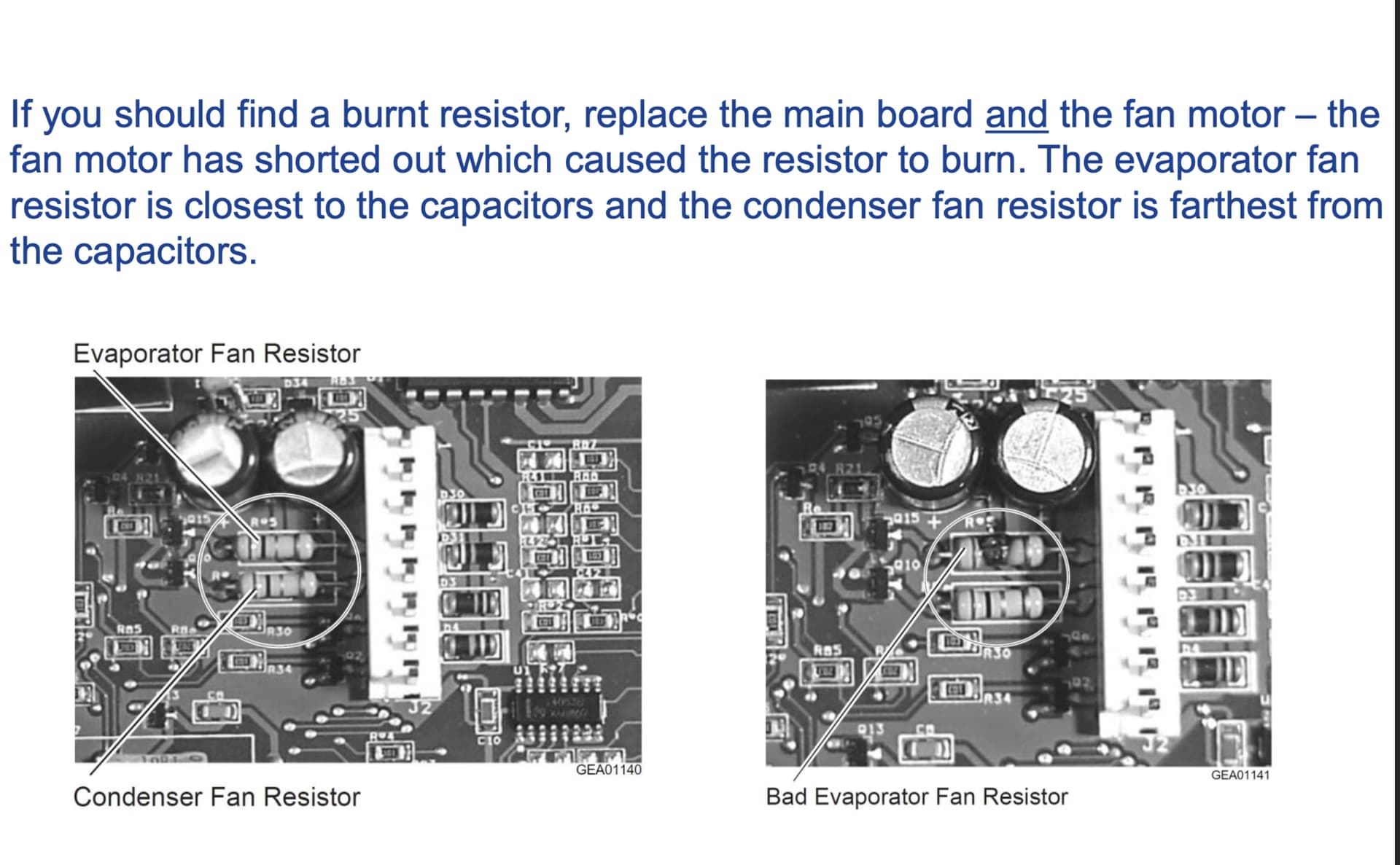 The clicking noise was repeating at about 2 second intervals. Started on a Friday and the cooling quit overnight the following Sunday. Noticed the fan at the bottom right twitching with every click, but not spinning. Chat recommended a ptc relay, (WR07X10086 Ptc Relay (Start Device) | Genuine Ge OEM In Stock). I am wondering if that was a mistake because the clicking sound was clearly coming from the main controller board, not the area near the compressor, where the ptc relay is located. Is there a way to test the ptc relay to see if it’s the cause before replacing it? The part is on order but hasn’t shipped.