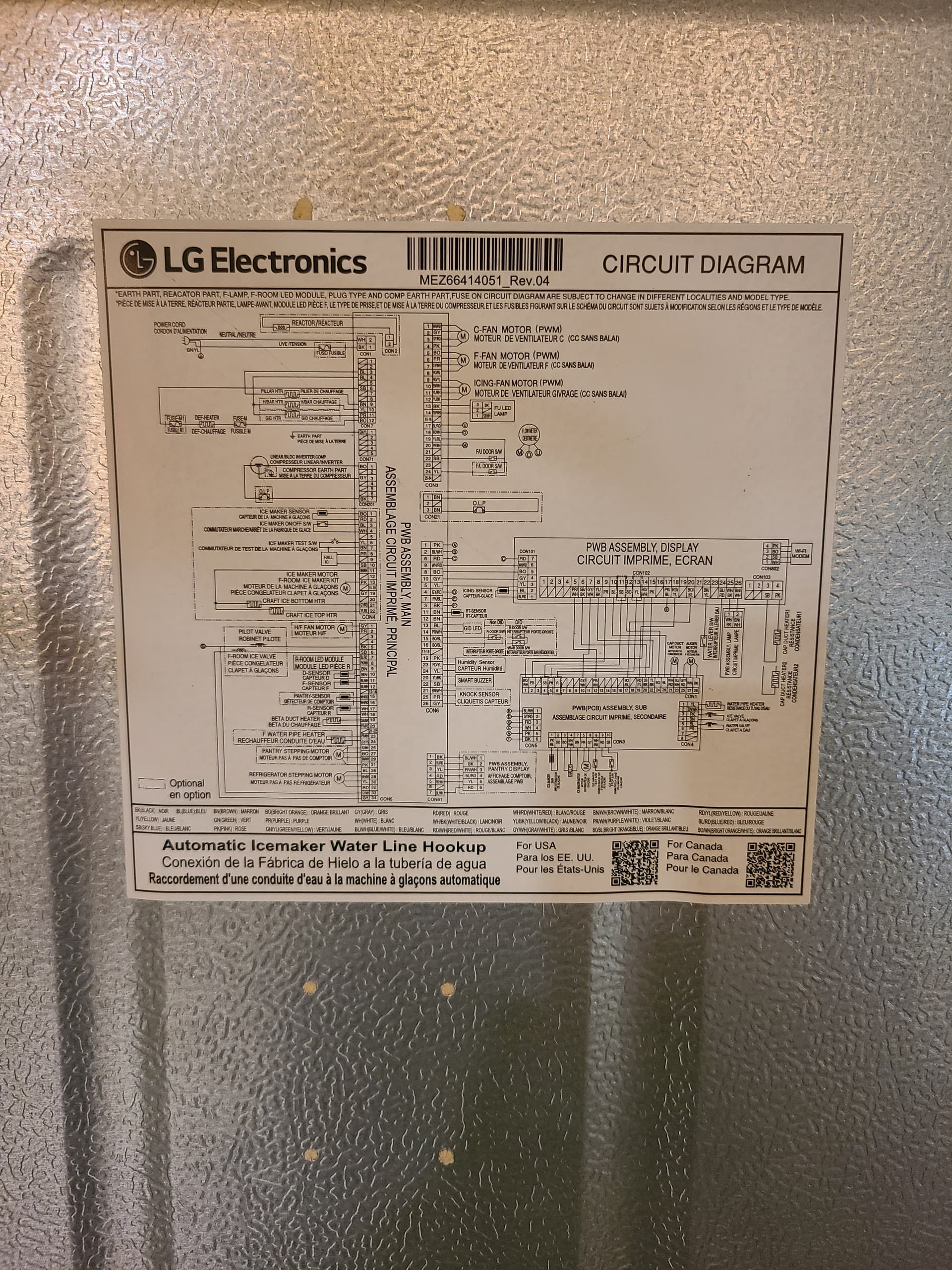 Brand: Model Number: LMXS28626S/08 Main Symptom: won’t cool What happens & when: Compresser fan was making a noise. Cleaned it and front panel displayed FF E code. Unplugged unit to reset with no change. Defrosted unit over night with no change. Freezer temperature displays-1 and refrigerator temperature displays 34 but is 50. Will not make ice. Talked to one of your service reps and she said that it may be the evaporater fan but with the temperature reading being what it is that it may be the control board not working properly so I should contact one of your service technicians to properly diagnose to order correct part. Contacted LG and they were of no help. LG refrigerator model lmxs28626s/08 Thank you in advance