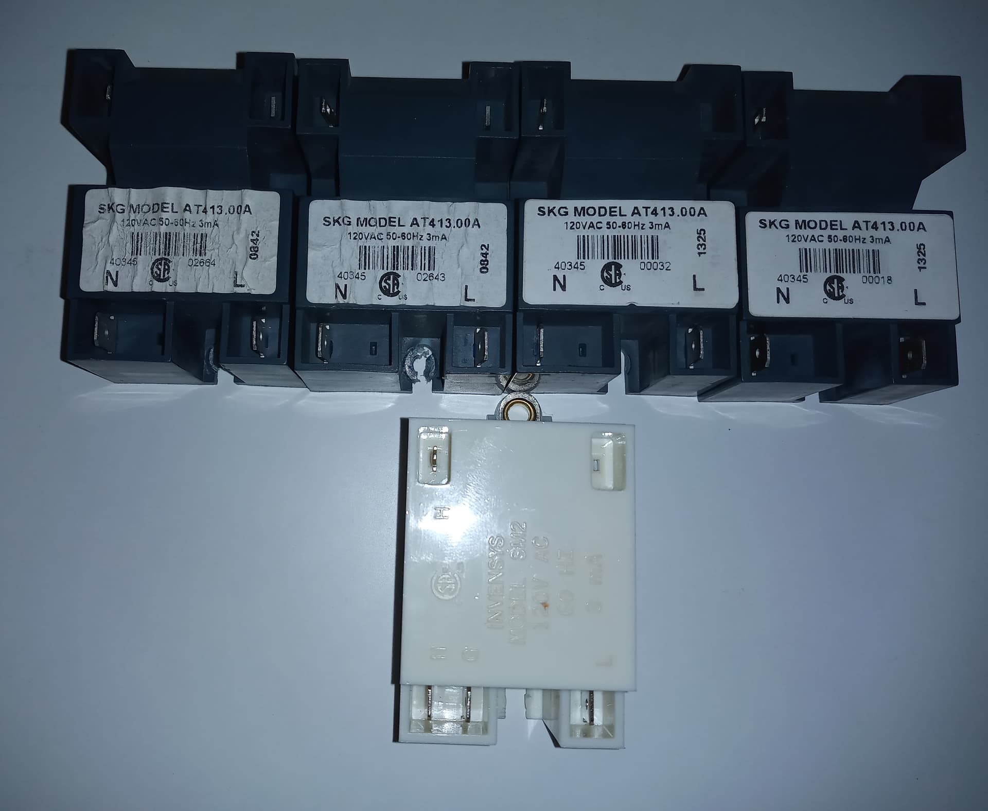 Bought this high-end gas range 12 years ago. Over the years replaced 5 ignition modules. Four modules were provided by the dealer (SKG MODEL AT413.00A). They did not last. Bought the fifth module from 3rd party (INVENSYS MODEL SM2, white on the photo), which lasted a few years. Now all of them are discontinued. Tried to buy a different module (IGN-7844), installed it, it works, but it does not stop clicking.