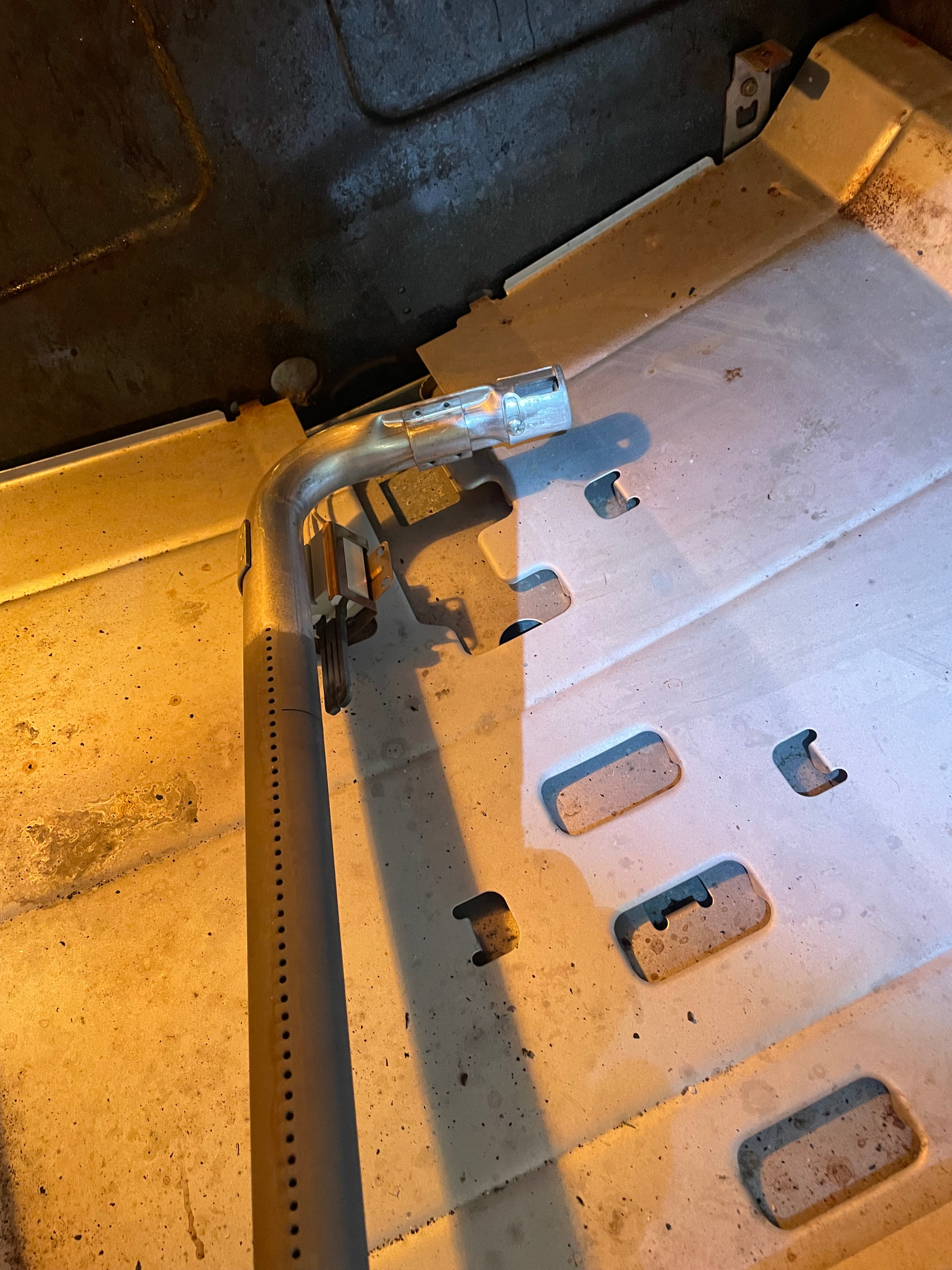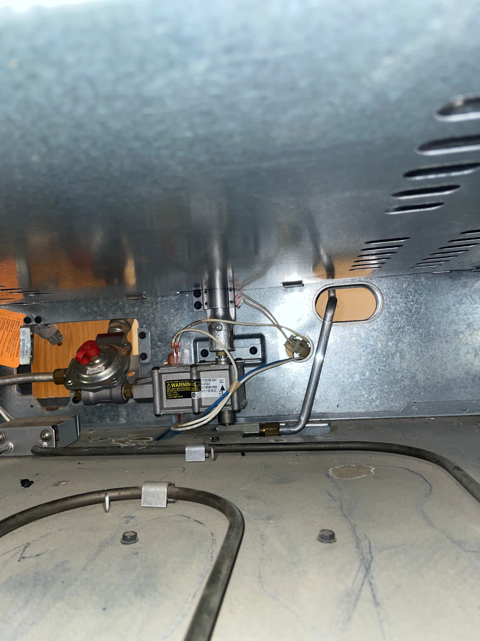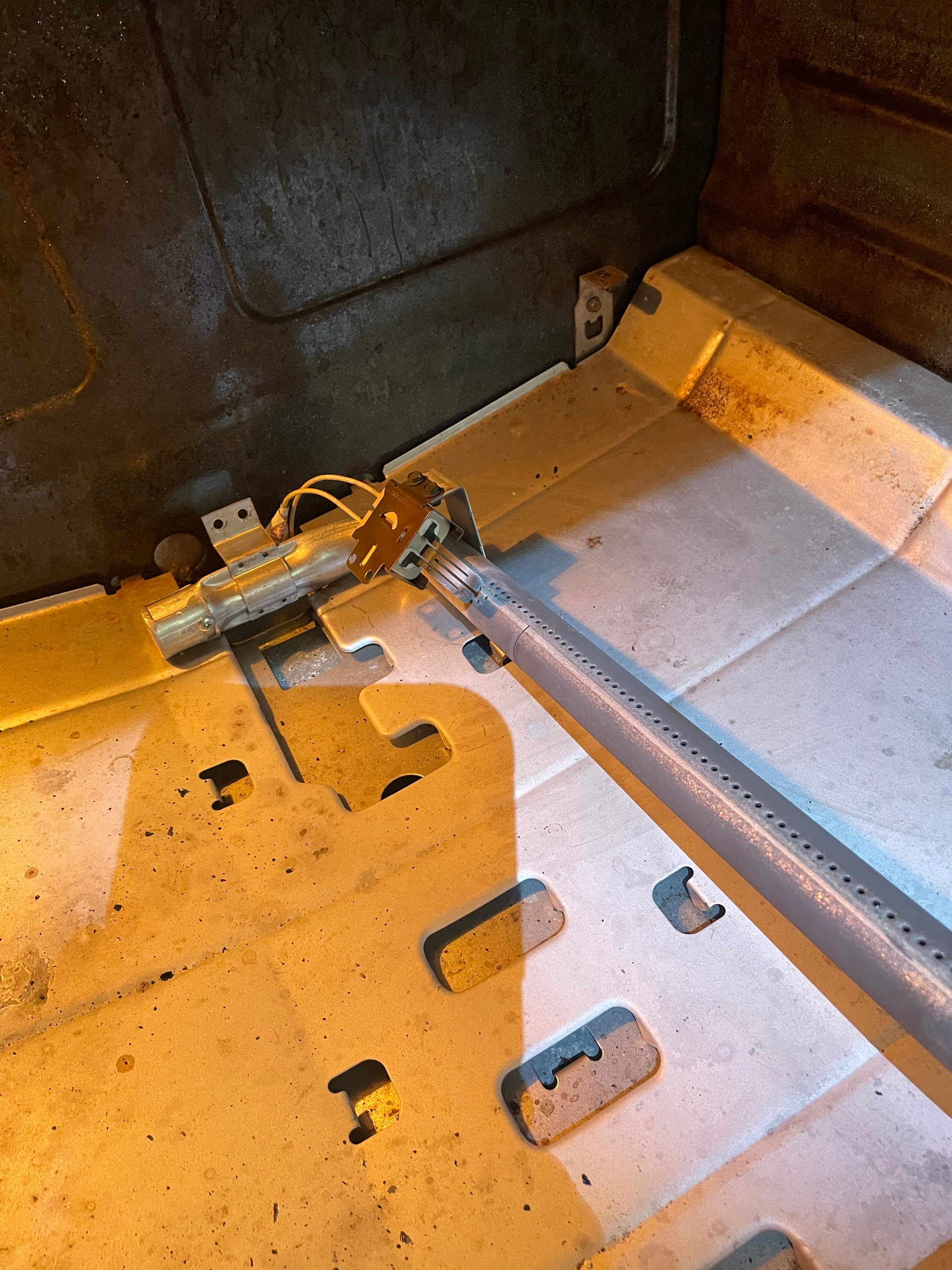 I cleaned the gas tube jets with a paper clip. All appeared to be clear before i did it. While While I was there, I put a clamp amp meter on the bake igniter white wire that goes to valve. When I turned on baker to 350, the measured current slowly rose from 0 to 2.3 amps and hovered there. For comparison I did similar measurement of broiler gas igniter. I put clamp amp meter on broiler igniter blue wire that goes to valve. When I set broiler to max, the measured current quickly jumped to 3.0 amps and stayed there.