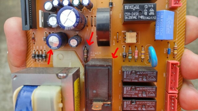Today the microwave started making a buzzing sound. I took out the control panel and powered up the unit. It appears that the RY03 power relay on the back of the board is doing the buzzing, its placed so you cannot read all of the numbers to look for a replacement… Also looking at the board I can see a resistor R51 darkened the circuit board and would like to replace it. I don’t know how to read the value and % to look for a replacement. From other posts they speak about the C01 capacitor going bad, the C01 of mine looks like it is just starting to bulge very slightly so I will replace that too (220uf 50V).