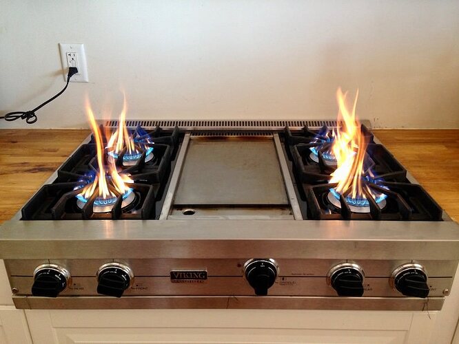 A builder friend of mine gave me this rangetop. When I turn it on to high, the flames reach up to a foot high. It’s more normal when I turn the knob lower though. Is this just the way Vikings are? It seems like a fire hazard to me.